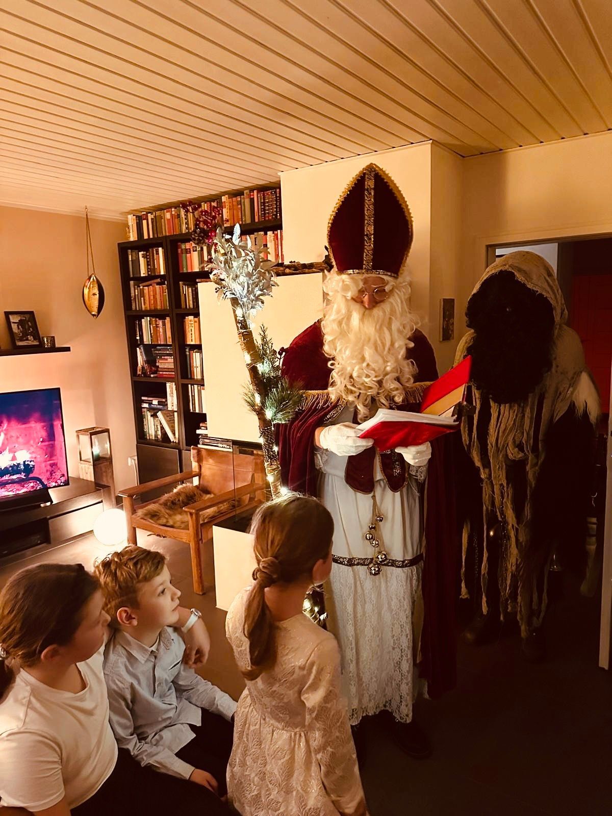 Bild: Tobias Fritsch als Nikolaus in Begleitung seines „lieben“ Krampus und spendete 620 Euro an das Theotinum und den Hospizdienst Ammersee. Bildrechte: Tobias Fritsch Als Nikolaus besucht Tobias Fritsch aus Dießen nicht nur die eigenen Kinder, sondern klopft auch in anderen Familien an. An drei Tagen war er heuer unterwegs und konnte 42 Kindern in Dießen, in Weilheim, Issing und Untermühlhausen eine Freude bereiten. Bezahlen müssen die Familien dafür nicht, nur um eine Spende wurde gebeten, und so kamen heuer 620 Euro zusammen. Diese übergab Tobias Fritsch je zur Hälfte an das Theotinum Kinderhospiz in Dießen und den Hospizdienst Ammersee. Tobias Fritsch blickt inzwischen auf eine stolze „Karriere“ als Nikolaus zurück. Seine Sporen verdiente er sich in der eigenen Familie. Fliegt man da nicht auf als Papa im Nikolauskostüm? Tobias Fritsch schmunzelt: Seine Kinder, so sehr gebannt von dem einmaligen Moment, hätten ihn bis heute nicht erkannt. Lediglich seine Schuhe seien seiner Tochter bekannt vorgekommen, die später bemerkte: „Papa, der Nikolaus hatte Schuhe, wie du sie auch hast.“ Die Idee, den Nikolausdienst auf Spendenbasis auch anderen Familien anzubieten, entstand, da es wenige „Nikoläuse“ gibt und der Dienst oft recht teuer angeboten wird. So entschloss er sich im letzten Jahr, seinen Radius auszuweiten. Heuer konnte er sogar einen „lieben“ Krampus gewinnen, der ihn begleitete. „Wir konnten großzügige Spenden von den Familien sammeln und haben viele strahlende Kinderaugen gesehen“, freut sich Tobias Fritsch, der auch im nächsten Jahr wieder als Nikolaus Kindern eine Freude bereiten möchte.